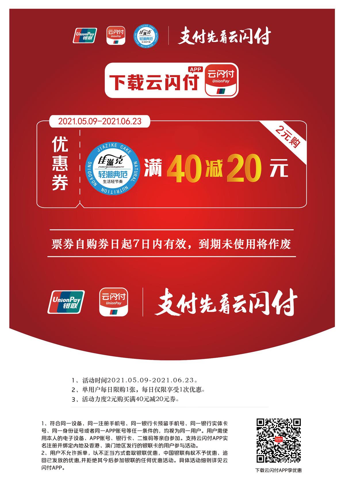 云闪付活动——佳滋克满40减20